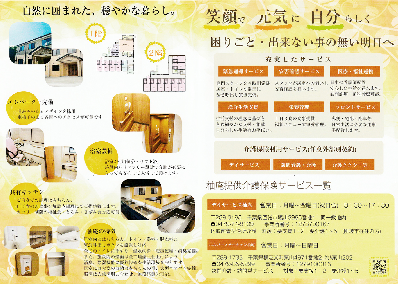 「サービス付き高齢者向け住宅柚庵」に興味をもっていただけましたら、(電話番号)までお気軽にご連絡ください。